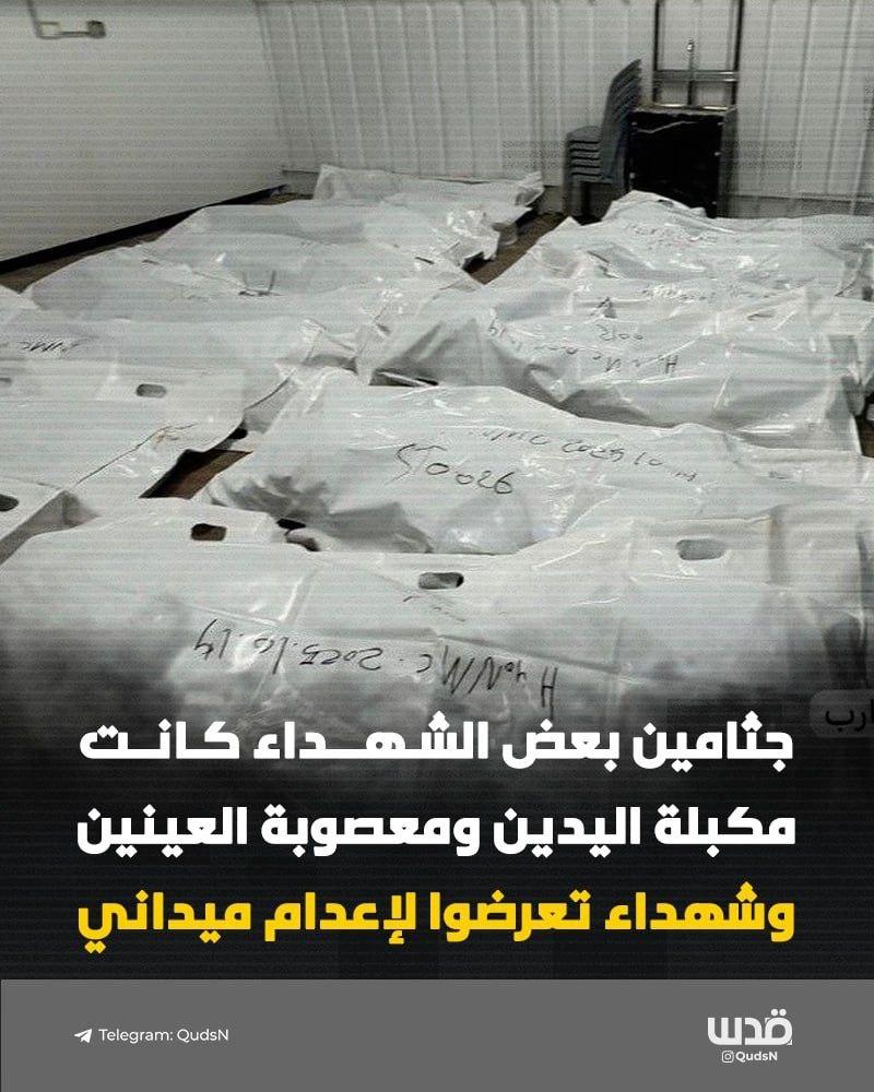 In an additional crime revealed by the bodies of the martyrs.. The bodies of some of the martyrs who were handed over by Israel as part of the exchange deal were handcuffed and blindfolded, and other martyrs were subjected to field execution.