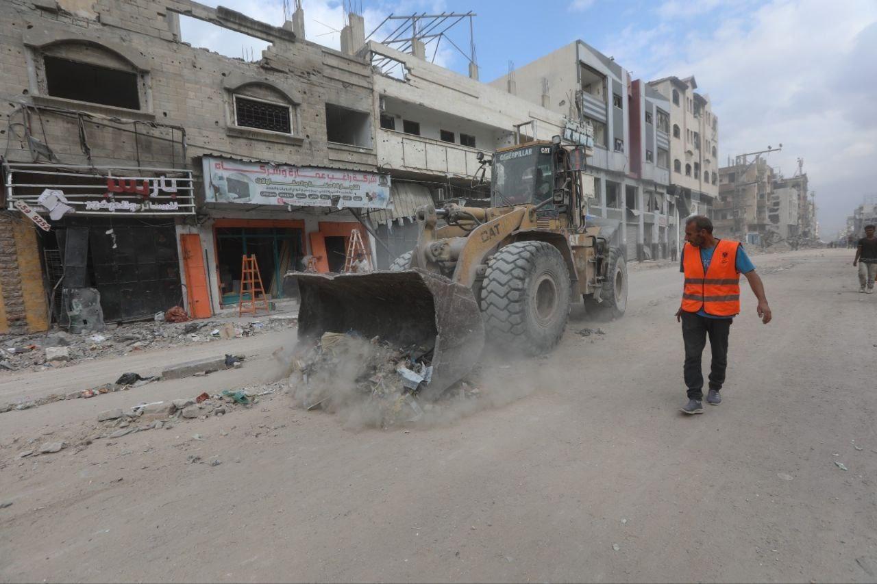 Gaza Municipality crews continue clearing rubble and reopening Al-Nasr Street after the ceasefire came into effect.