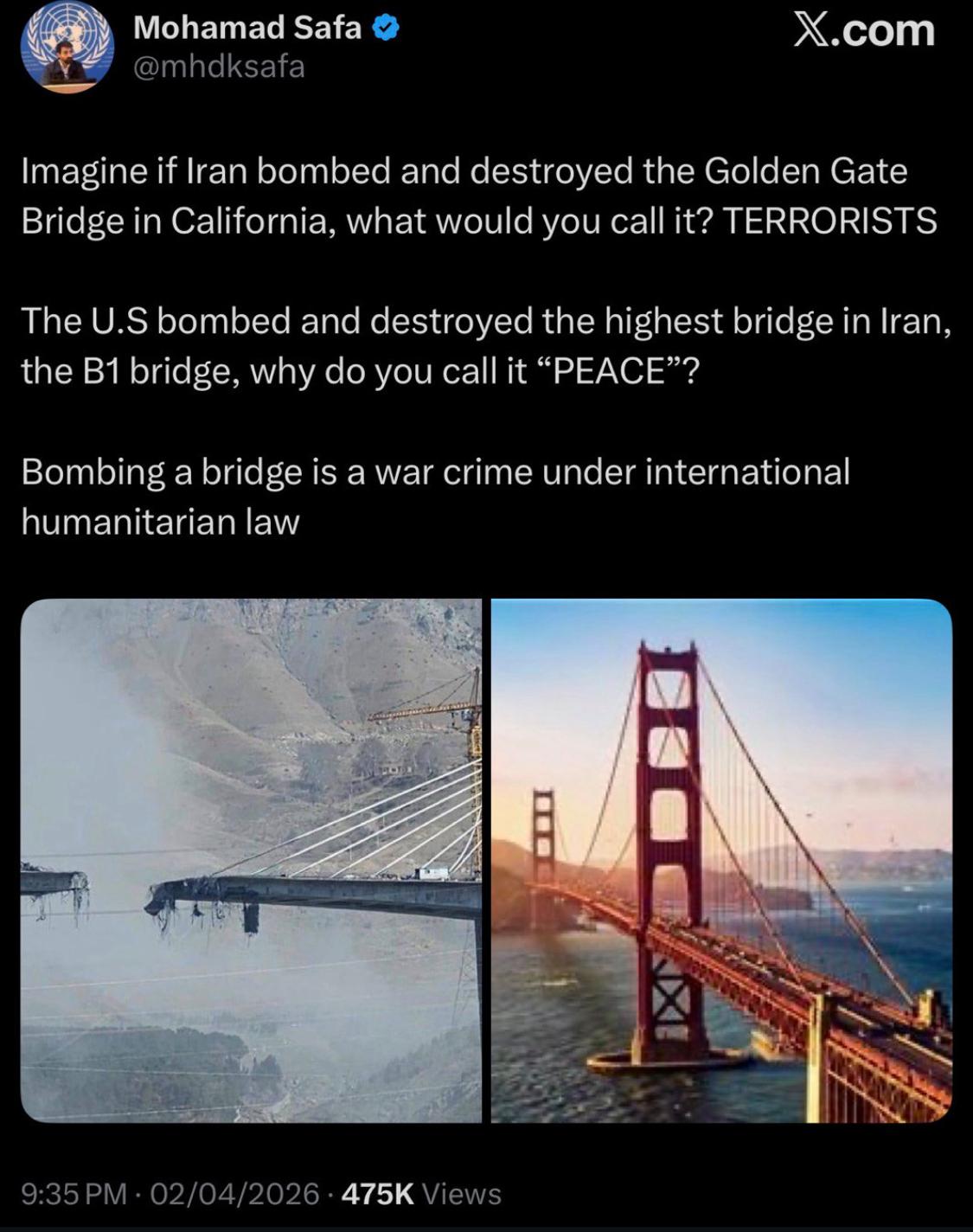 Imagine if Iran bombed and destroyed the Golden Gate Bridge in California, what would you call it? TERRORISTS