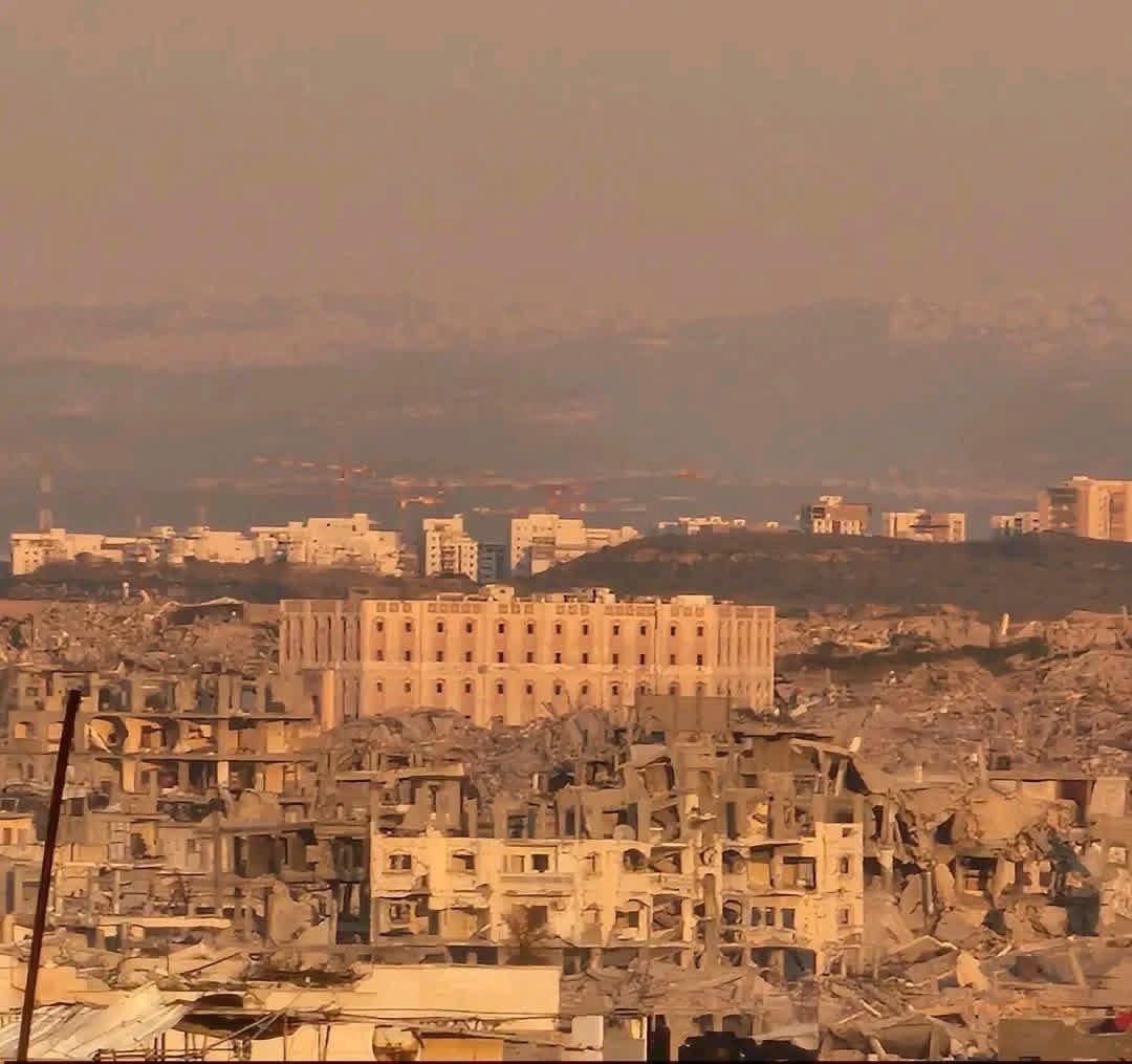 The people of Gaza can now see the mountains of Al Khalil in occupied Palestine due to the scale of the destruction ...This photo is from the Indonesian Hospital in the Sheikh Radwan neighborhood! And opposite it are the Hebron mountains in northern Gaza.
