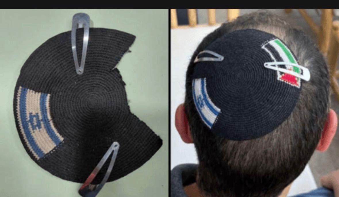 Israeli police detained a Jewish man for wearing a kippa with the Israeli and Palestinian flags, then took the kippa and cut out the Palestinian flag.